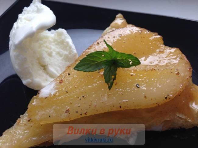 Ароматная груша, сливочный вкус и хрустящее слоеное тесто – вот слагаемые успеха. Кроме того, пикантная нотка кардамона и чуточка черного перца делает десерт по вкусу божественным!